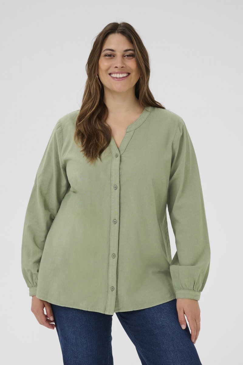 LangarmhemdErhältlich in den Größen 42–54Von der Marke Kaffe CurveHergestellt aus 100% BaumwolleNormale PassformFarbe: Grün
