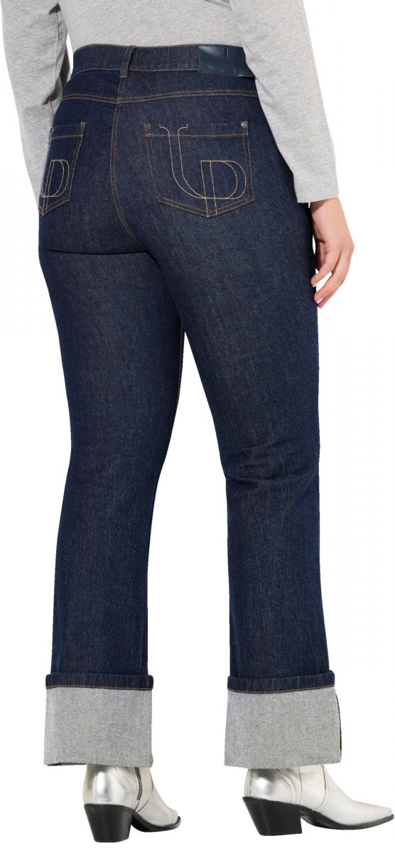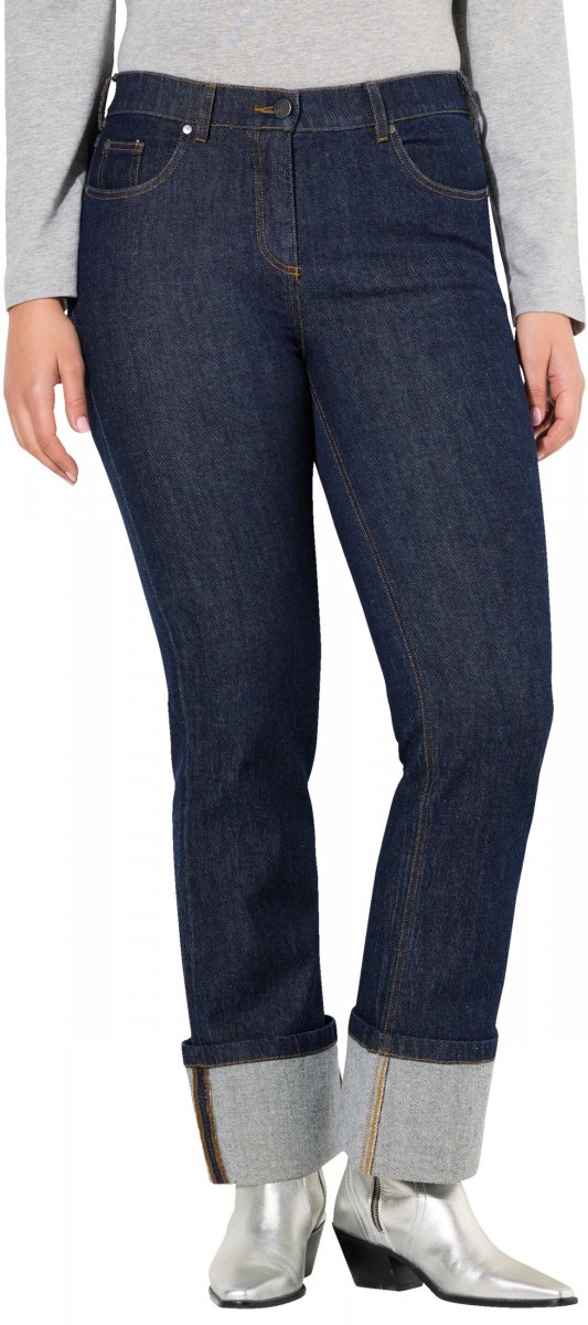 Größen-Ratgeber - Ulla Popken Turn Up Hem Wide Leg Mary Jeans Grey Denim