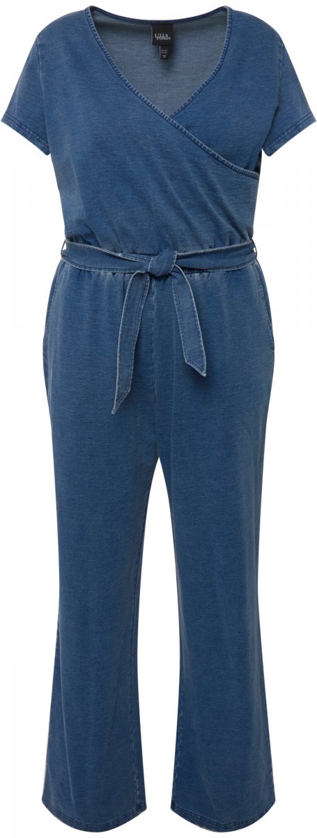 Ulla Popken Wrap Look Short Sleeve Denim Jumpsuit Blue