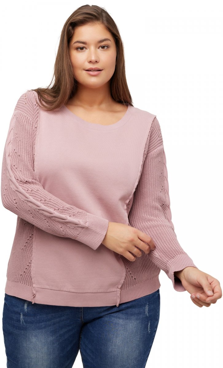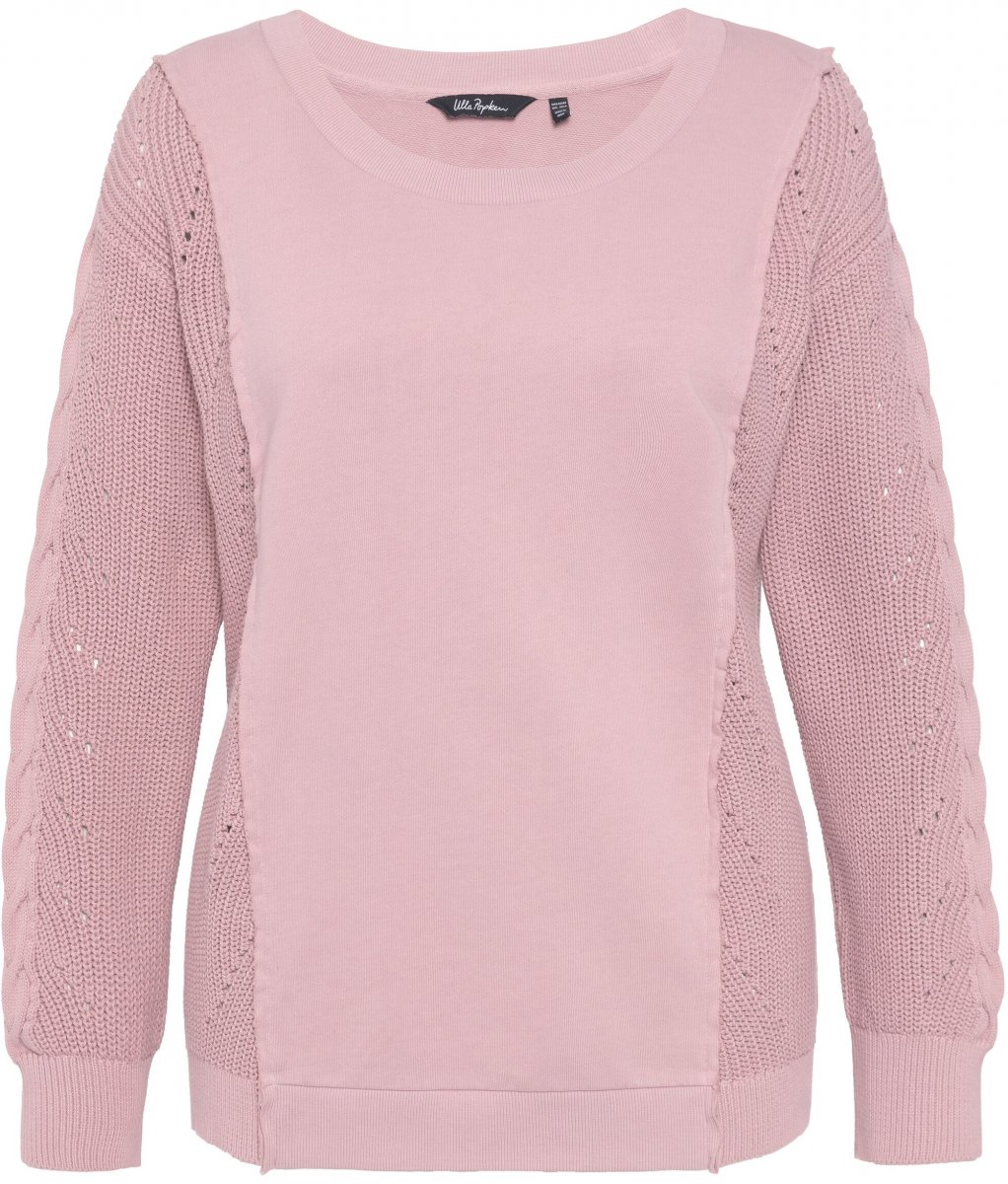 Ulla Popken Mixed Knit Patch Look Sweatshirt Old Pink