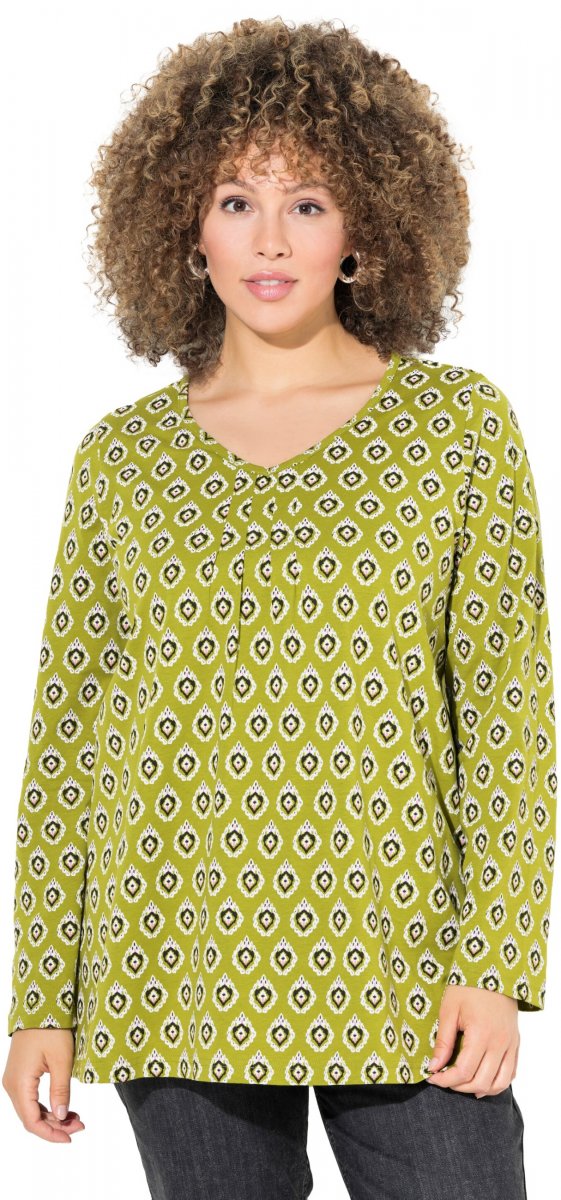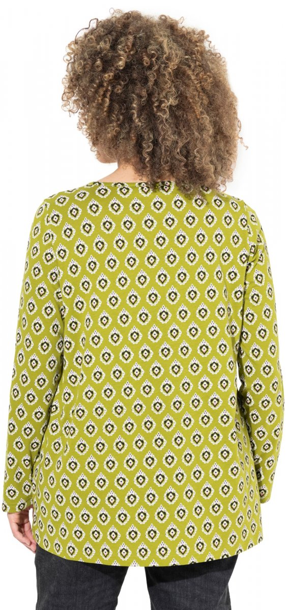 Ulla Popken Allover Graphic Long Sleeve Tee Avocado Green