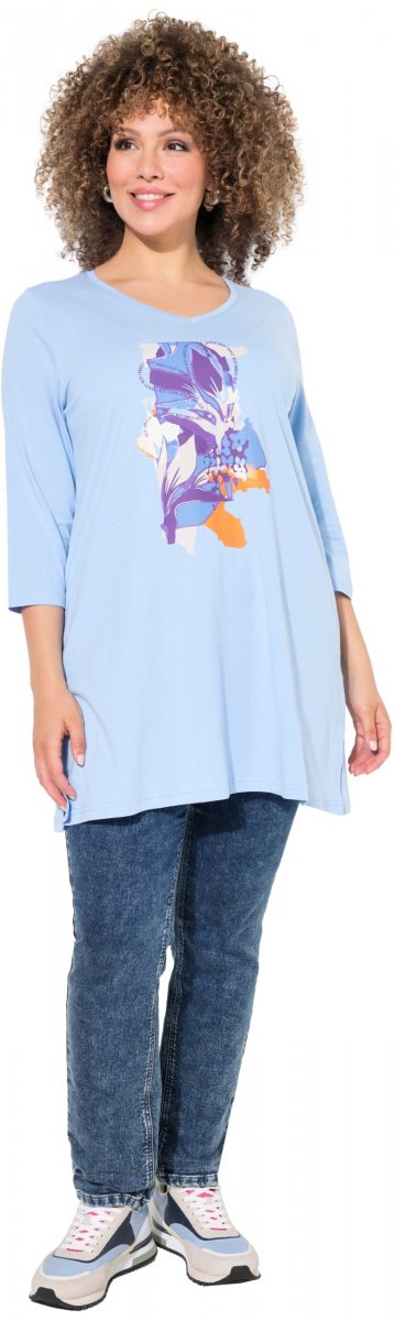 Größen-Ratgeber - Ulla Popken Floral Motif 3/4 Sleeve Tunic Tee Light Blue