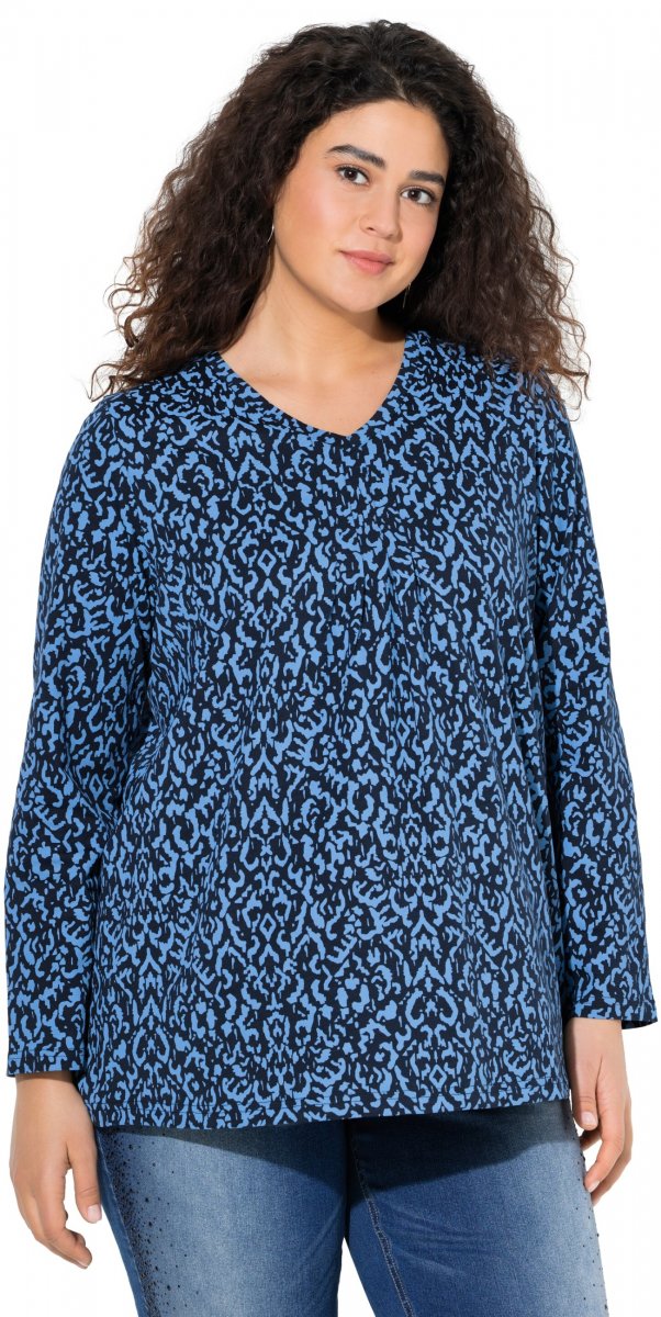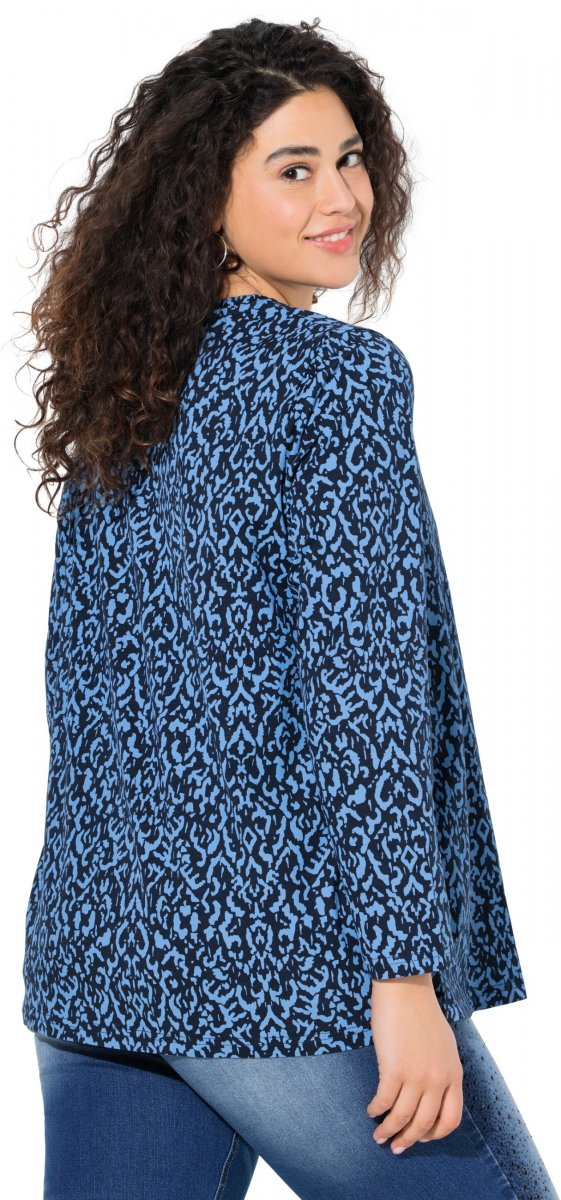 Ulla Popken Geometric Print 3/4 Sleeve Pleated Tee Navy Blue