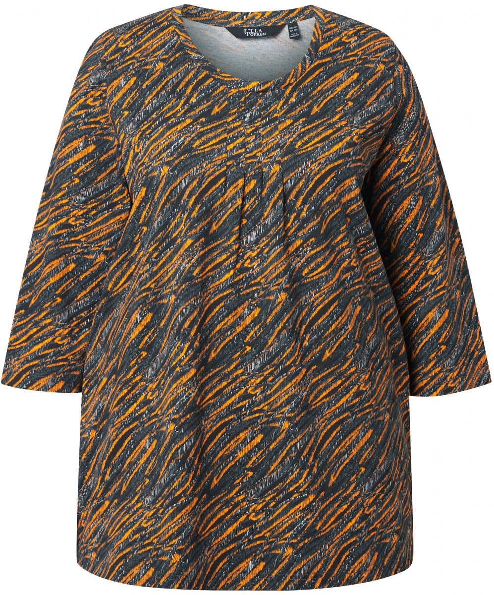 Ulla Popken Graphic Print 3/4 Sleeve Tee Neon Orange