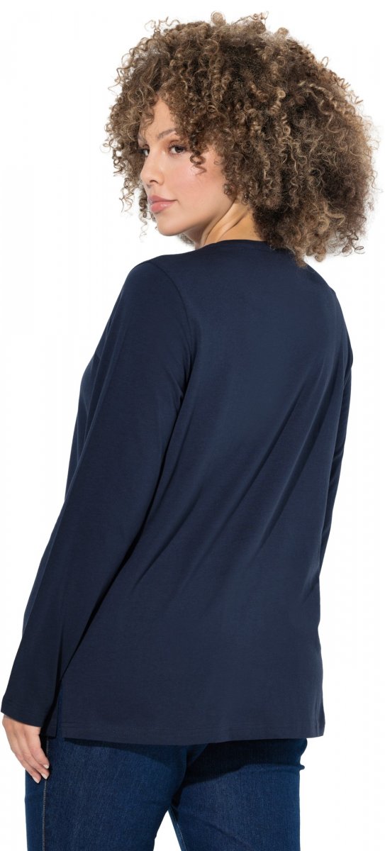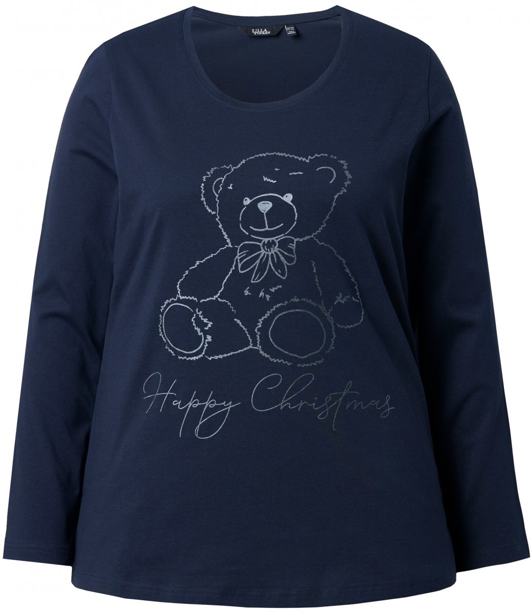 Ulla Popken Holiday Long Sleeve Graphic Tee Navy Blue