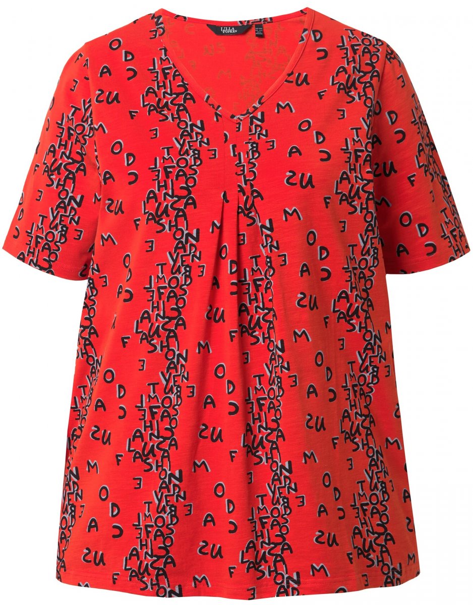 Ulla Popken Letter Print Short Sleeve Tee Red