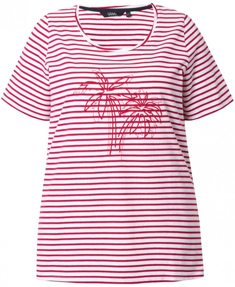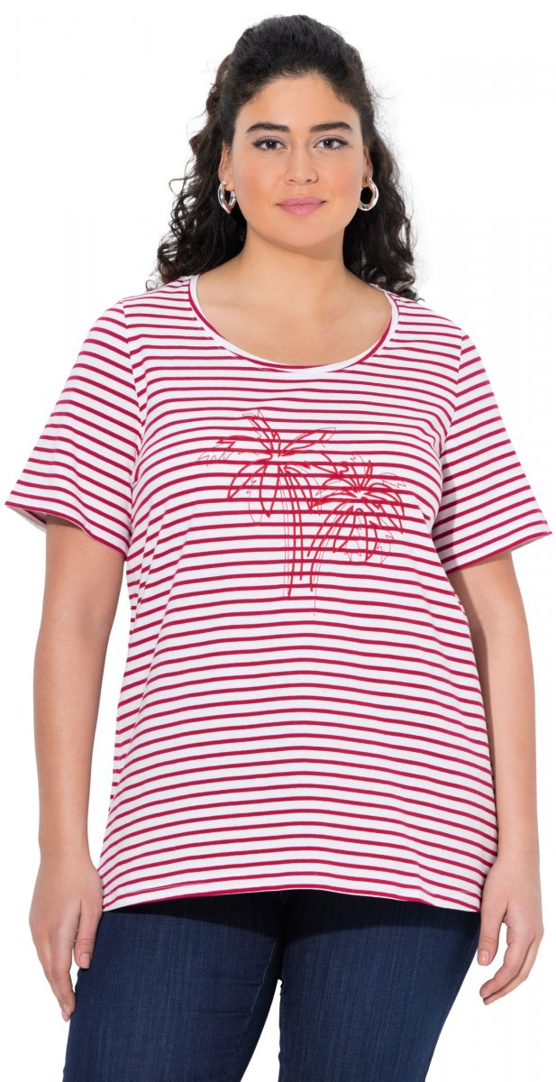 Größen-Ratgeber - Ulla Popken Palm Tree Embroidered Tee Dark Raspberry