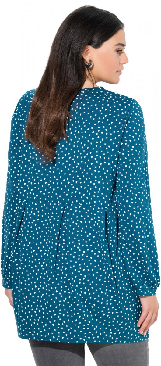 Größen-Ratgeber - Ulla Popken Pleated Confetti Print Long Sleeve Tee Teal