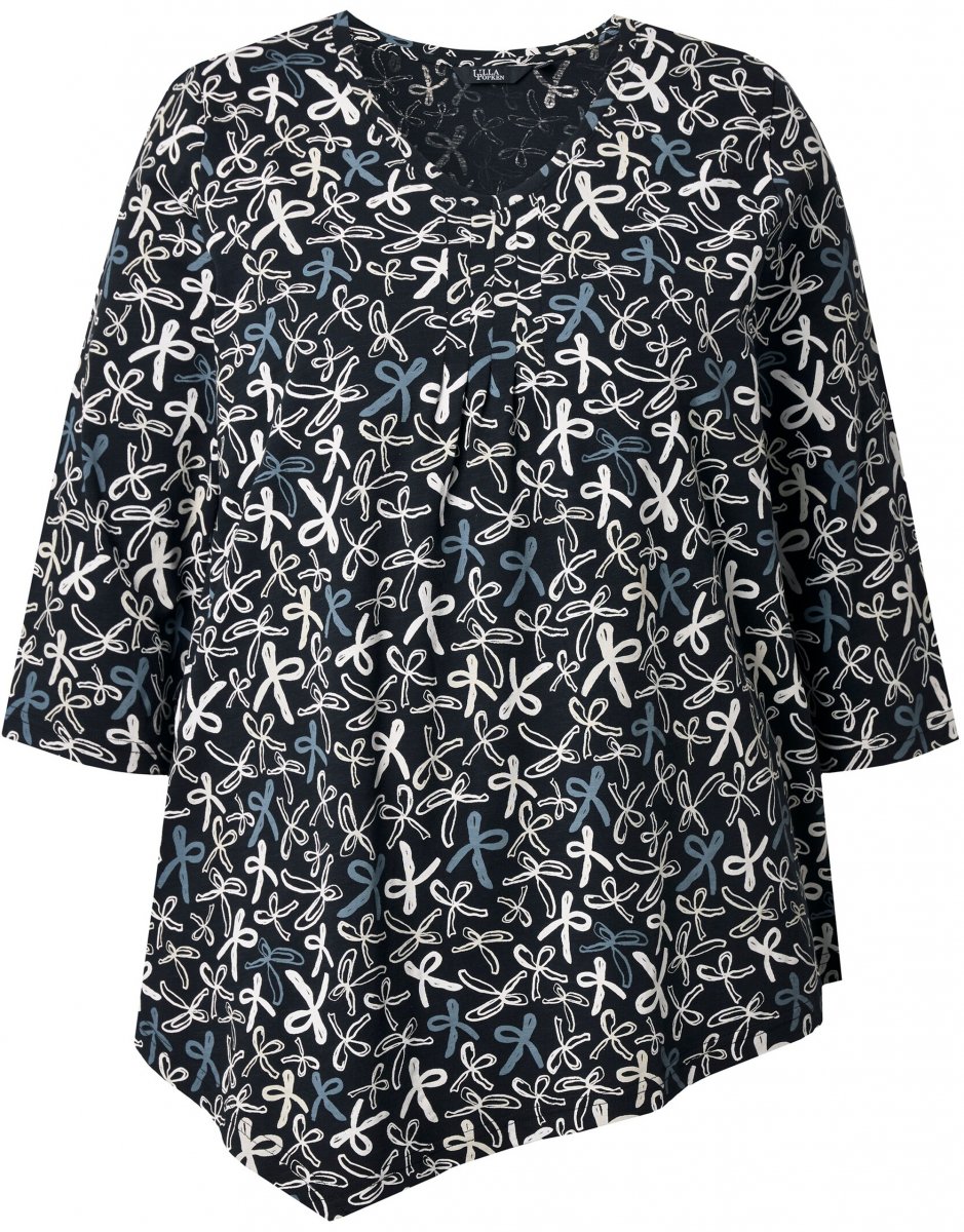 Größen-Ratgeber - Ulla Popken Ribbon Print 3/4 Sleeve Asymmetric Tee Black