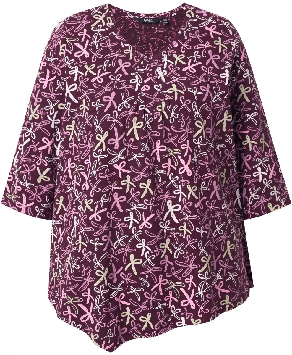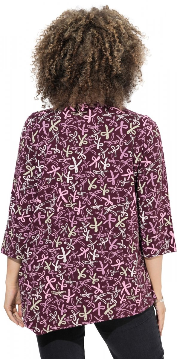 Größen-Ratgeber - Ulla Popken Ribbon Print 3/4 Sleeve Asymmetric Tee Plum