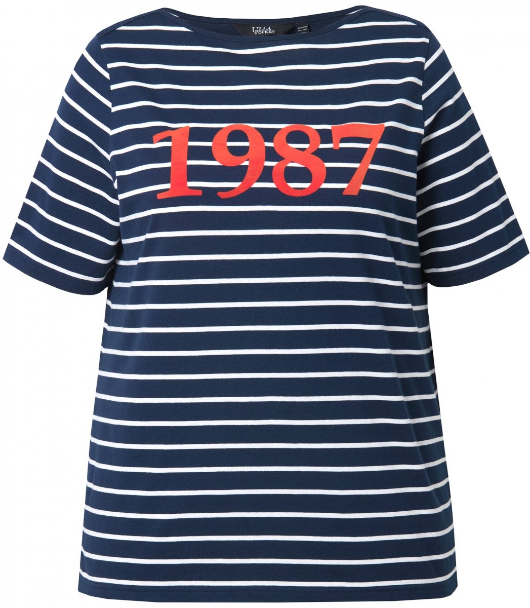 Größen-Ratgeber - Ulla Popken Striped 1987 Boat Neck Tee Navy Blue