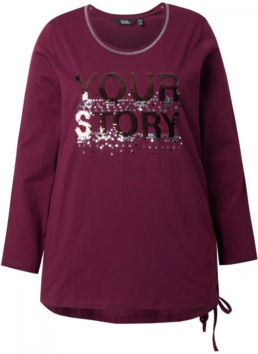 Größen-Ratgeber - Ulla Popken Your Story Sequined Long Sleeve Tunic Tee Dark Ruby