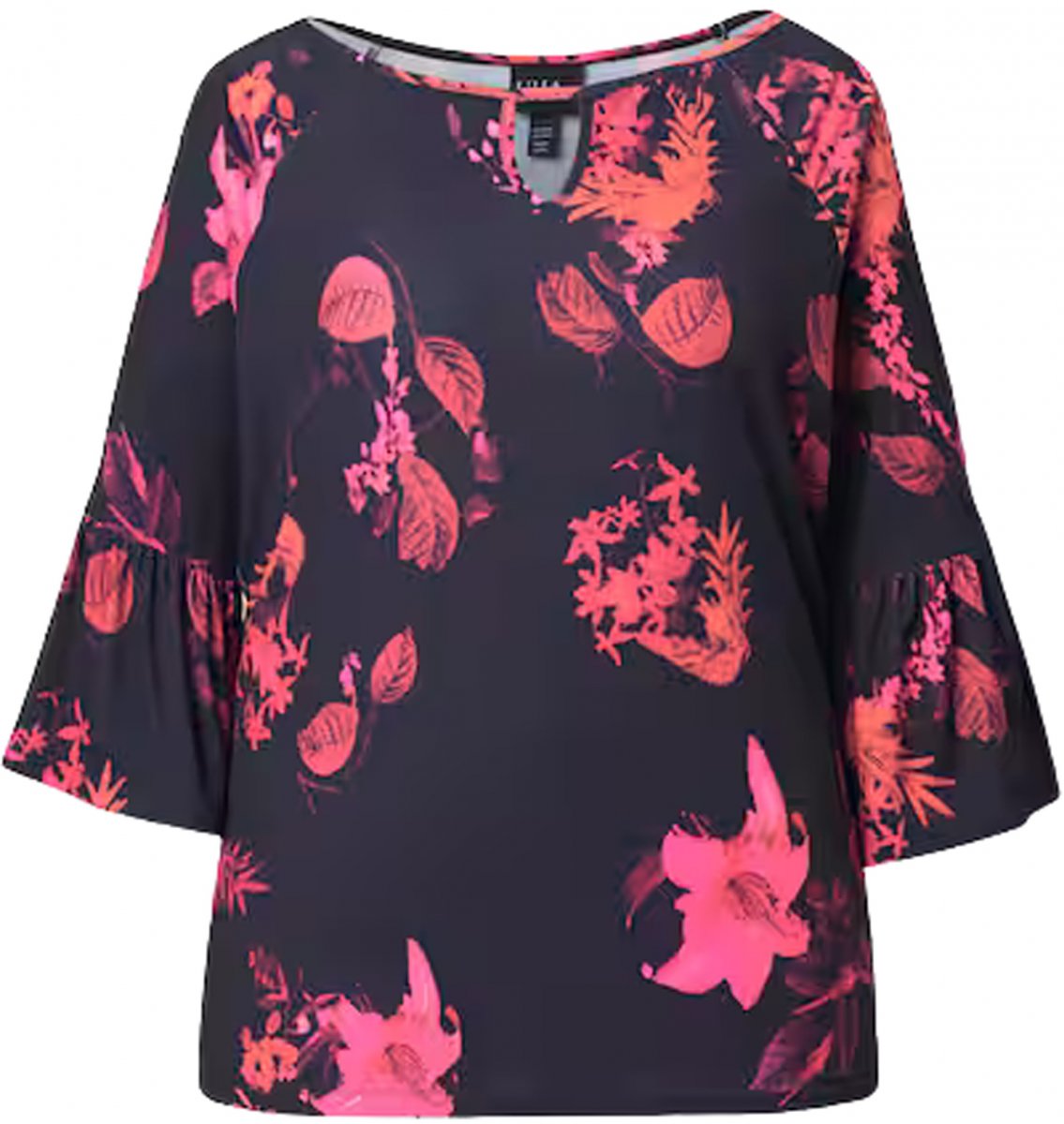 Größen-Ratgeber - Ulla Popken Botanical Print Cold Shoulder Top Black
