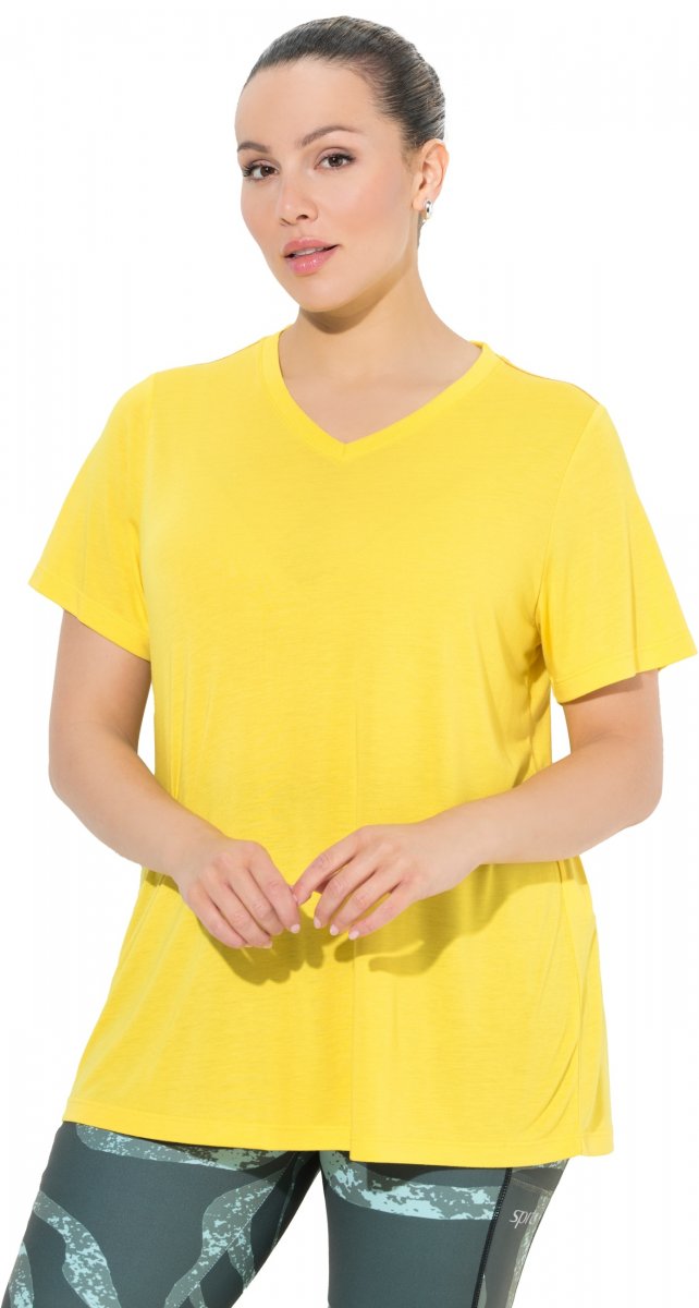 Größen-Ratgeber - Ulla Popken Functional Antibacterial Finish V-Neck Short Sleeve Knit Top Sun Yellow