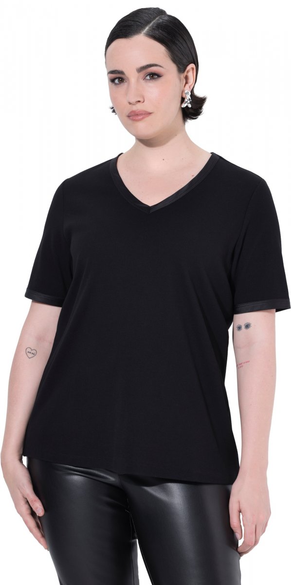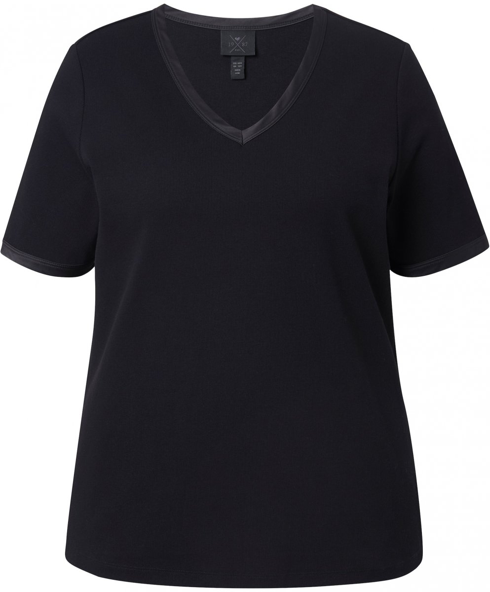 Größen-Ratgeber - Ulla Popken Satin Trimmed Ribbed Jersey Short Sleeve T-Shirt Black