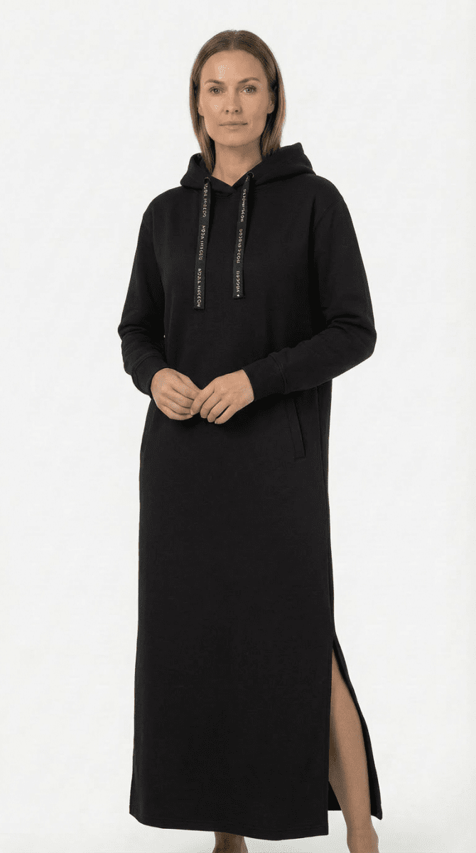 Langes Damen-SweatshirtVerfügbar in den Größen S-XXLVon der Marke Nora MikkenHergestellt aus 60% Baumwolle, 40% PolyesterMaxiFarbe: SchwarzDer Hoodie hat 2 VordertaschenUm den Größen-Ratgeber aufzurufen, klicken Sie hier