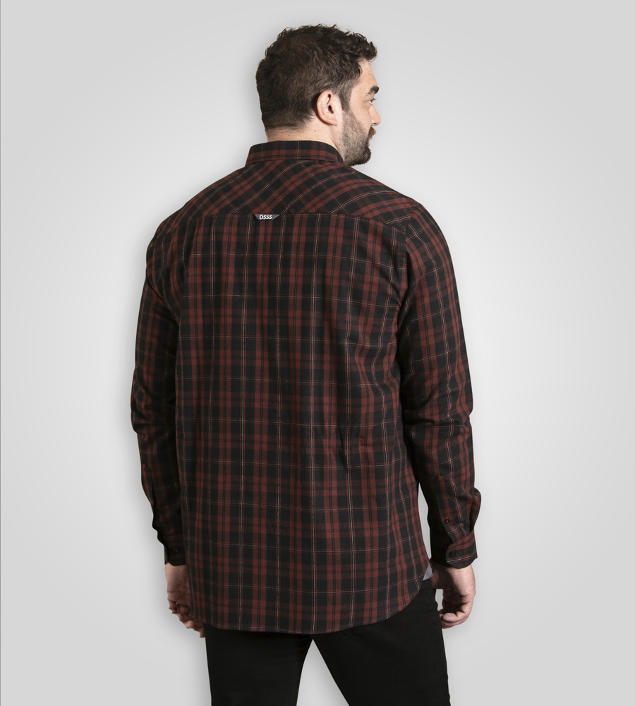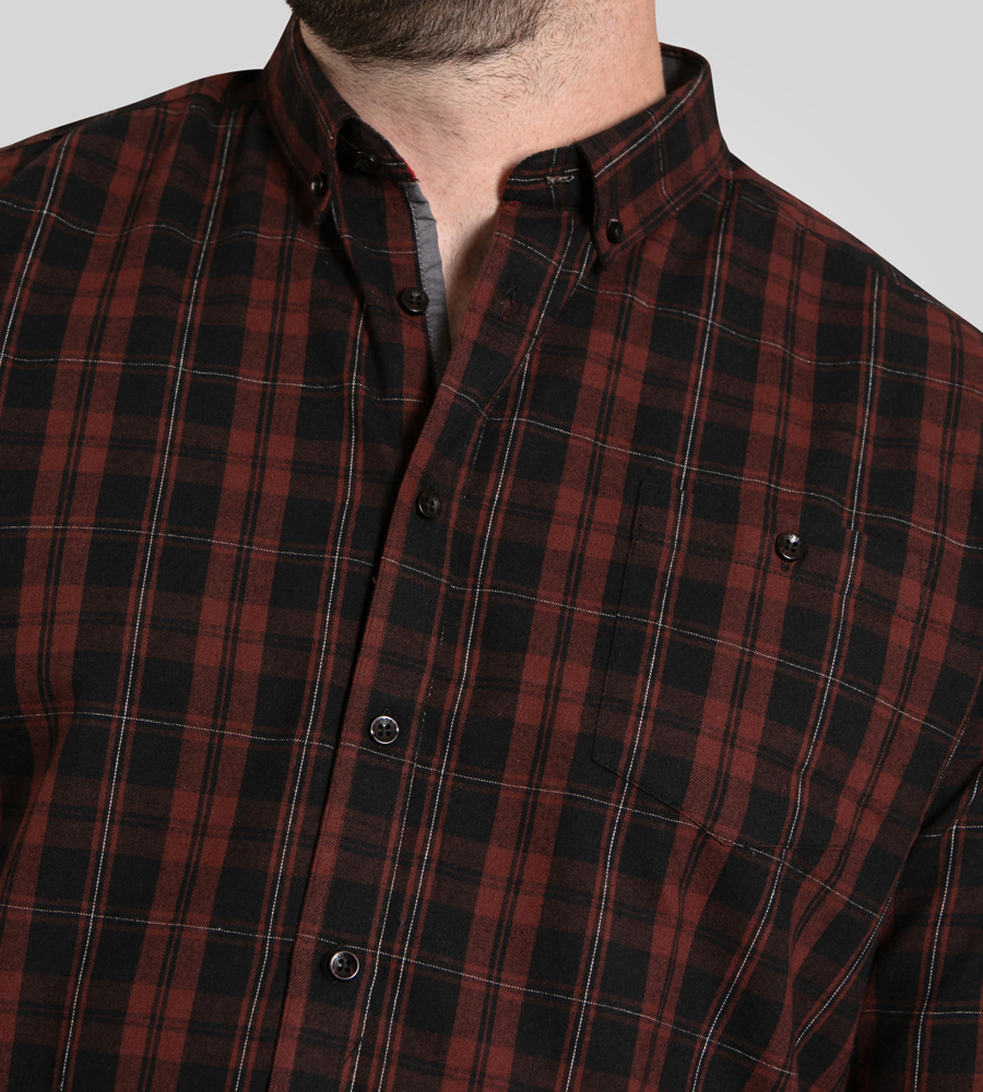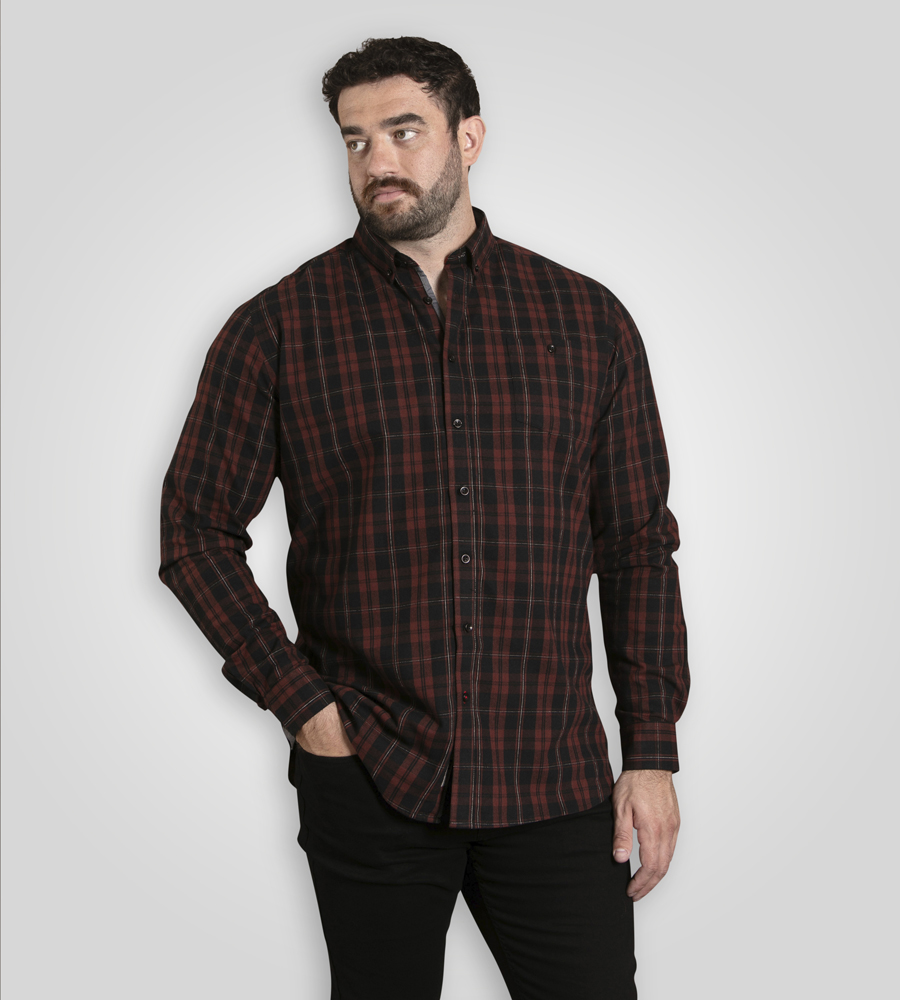 Größen-Ratgeber - D555 Horsham Long Sleeve Shirt with Chest Pocket Burgundy/Black Check