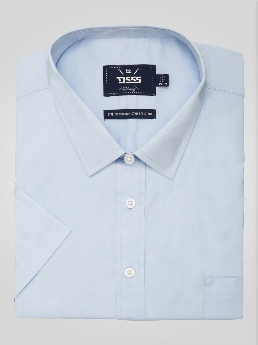 D555 Lucas Fleckenabweisendes Bügelfreies Stretch-Kurzarmhemd Hellblau