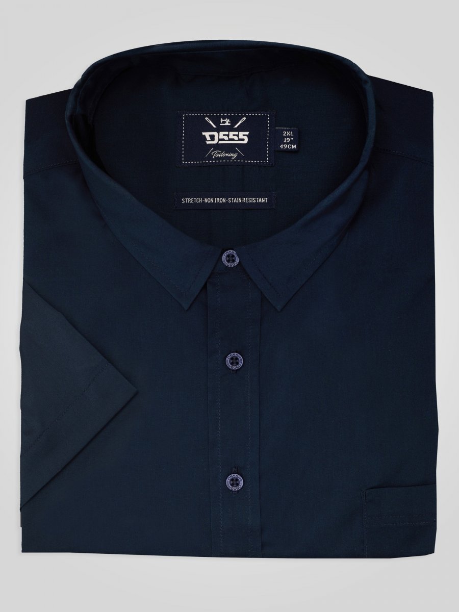 Größen-Ratgeber - D555 Lucas Fleckenabweisendes Bügelfreies Stretch-Kurzarmhemd Navy