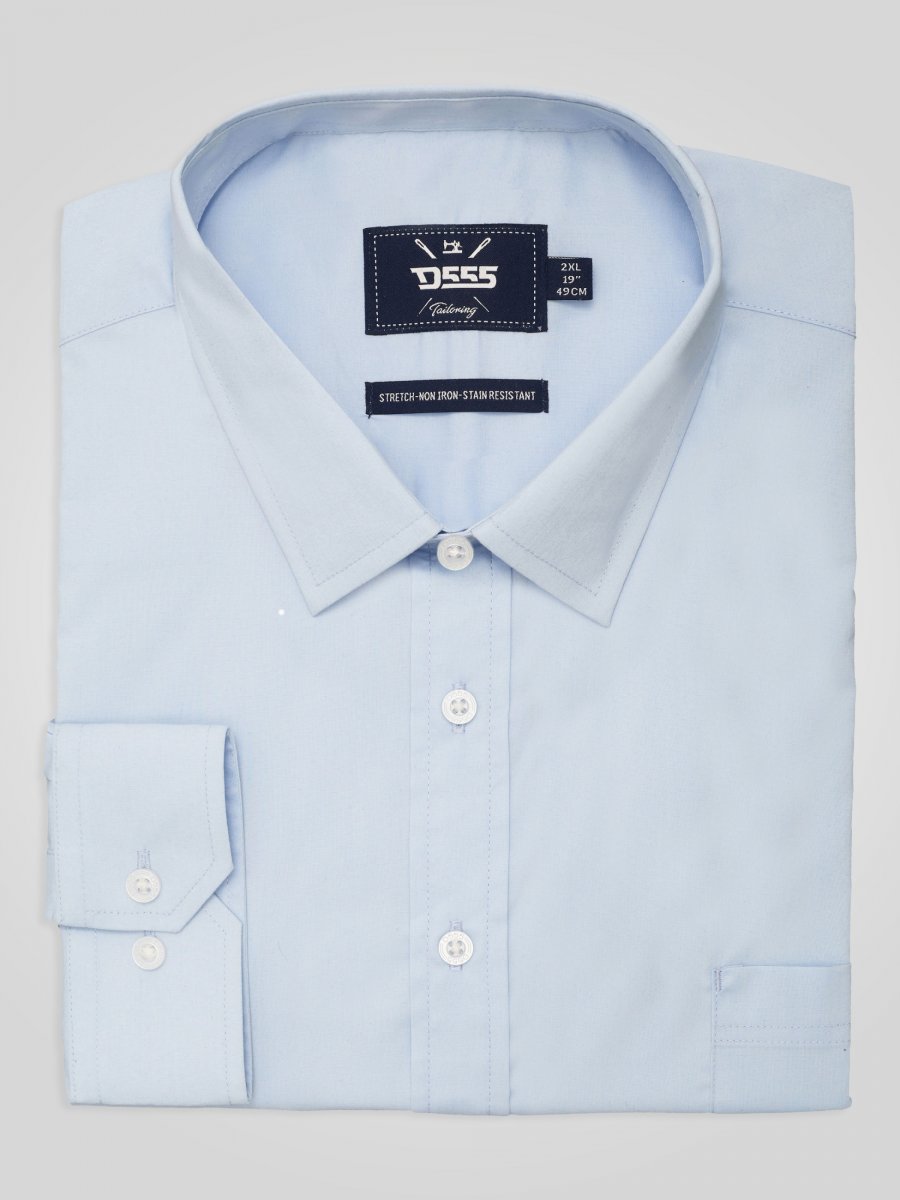 D555 Oliver Fleckenabweisendes Bügelfreies Stretch-Langarmhemd Hellblau