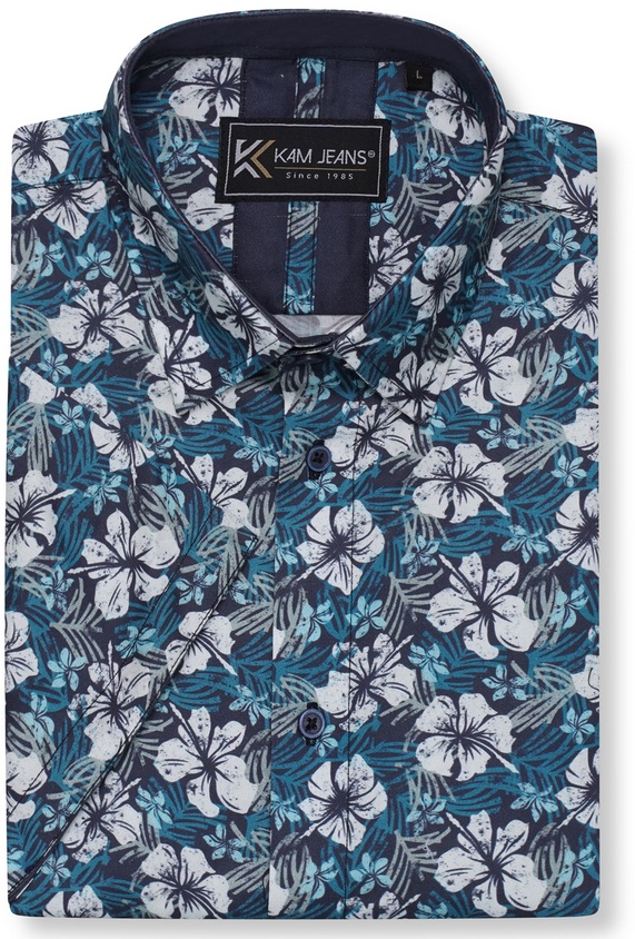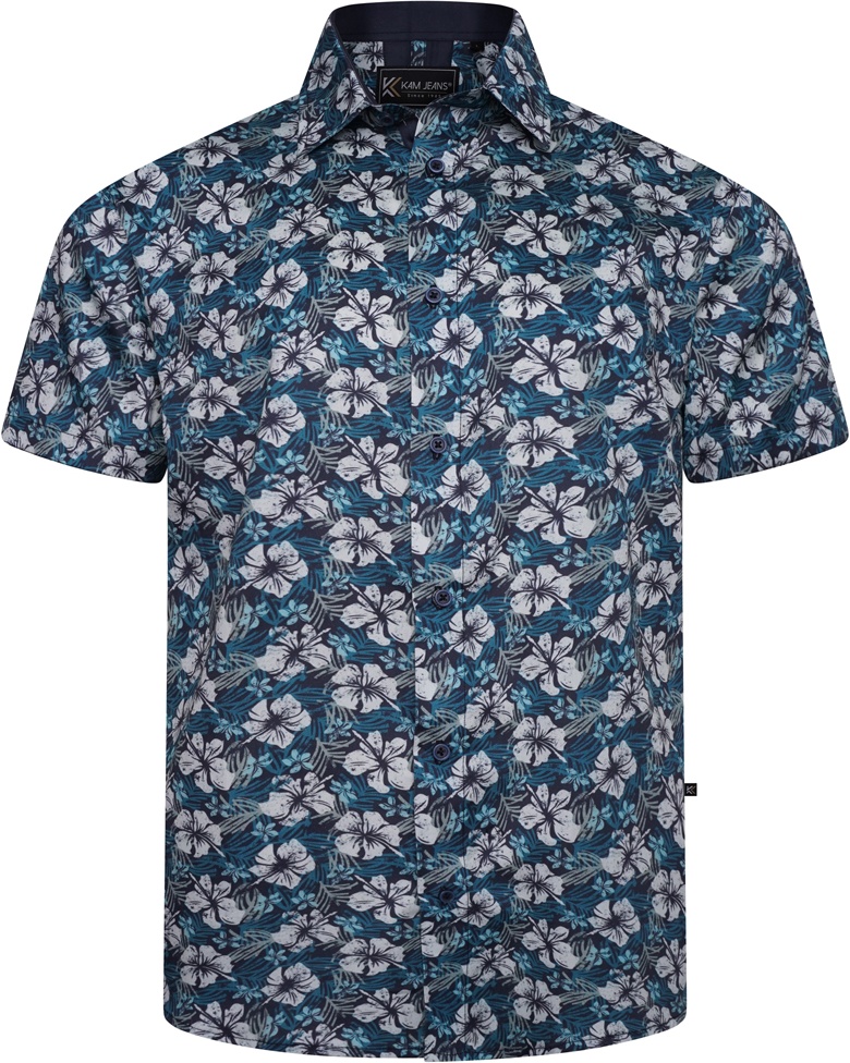 Größen-Ratgeber - Kam Jeans 6061 Hibiscus Floral Print Short Sleeve Shirt Midnight Blue