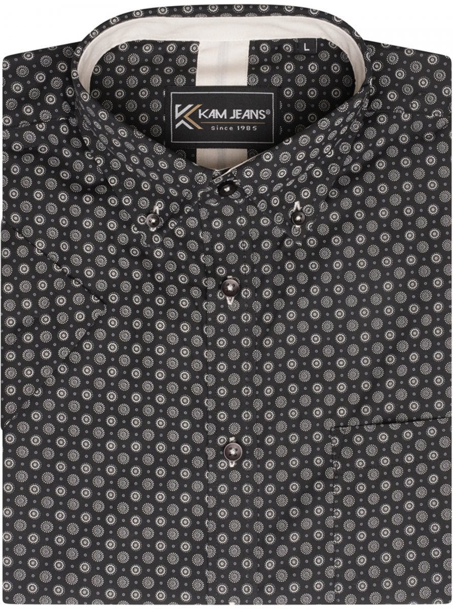 Größen-Ratgeber - Kam Jeans 6296 All Over Geo Short Sleeve Shirt Black
