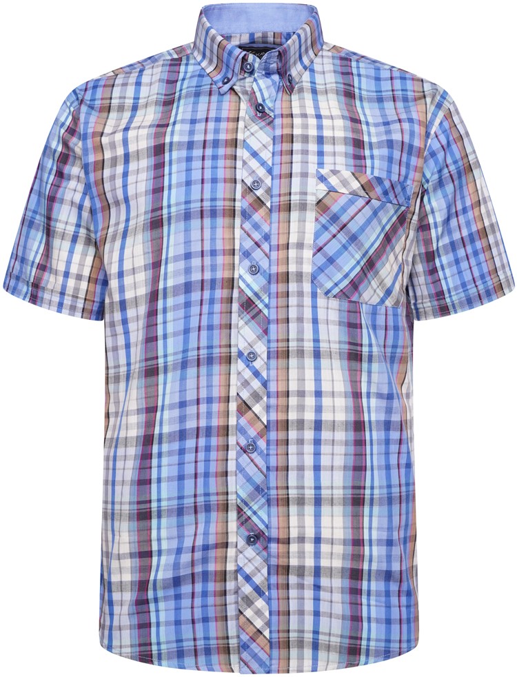 Größen-Ratgeber - Kam Jeans 6315 Casual Check Short Sleeve Shirt Sky Blue