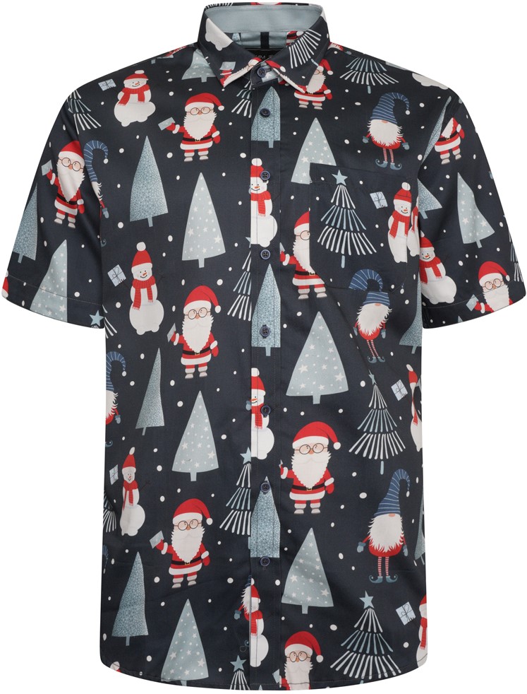 Größen-Ratgeber - Kam Jeans X033 Santa Xmas Print Short Sleeve Shirt Navy