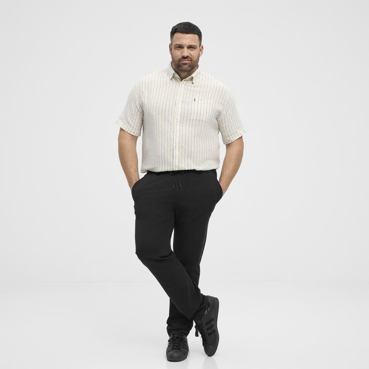 Hosen in großen GrößenKaufen Sie es bei uns in den Größen 2XL - 8XLVon der Marke North LatitudeHergestellt aus 54 % Leinen, 44 % Viskose und 2 % ElasthanFarbe: SchwarzMaschinenwäsche bei 30°Saisonware - die Größen werden nicht nachbestelltUm den Größen-Ratgeber aufzurufen, klicken Sie hier