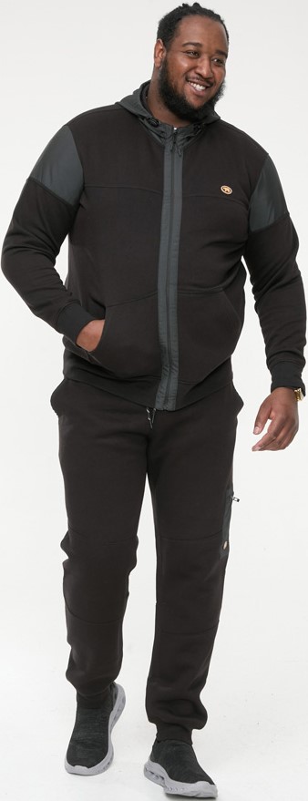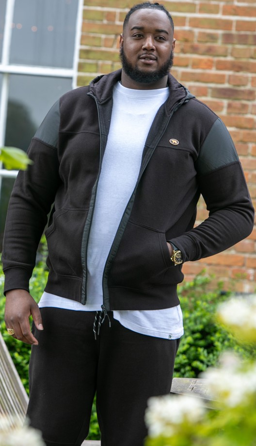 Größen-Ratgeber - D555 DEAN Couture Zip Through Hoody With Woven Contrast Fabric Trim Black
