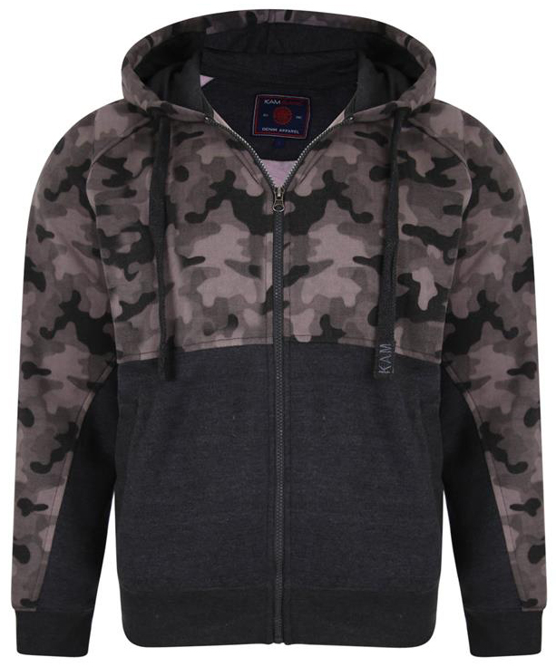 Größen-Ratgeber - Kam Jeans 7036 Camo Print Full Zipper Hoodie Charcoal