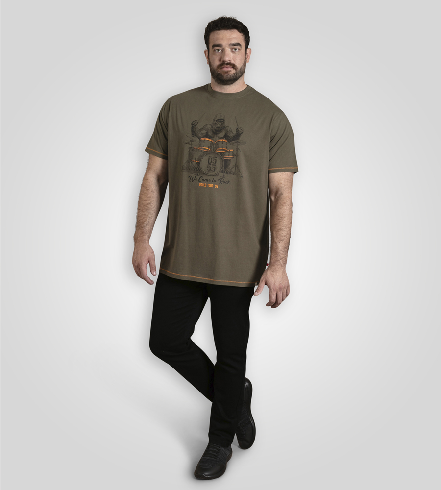 Größen-Ratgeber - D555 Stockton Gorilla Playing Drums Crew Neck T-Shirt Khaki