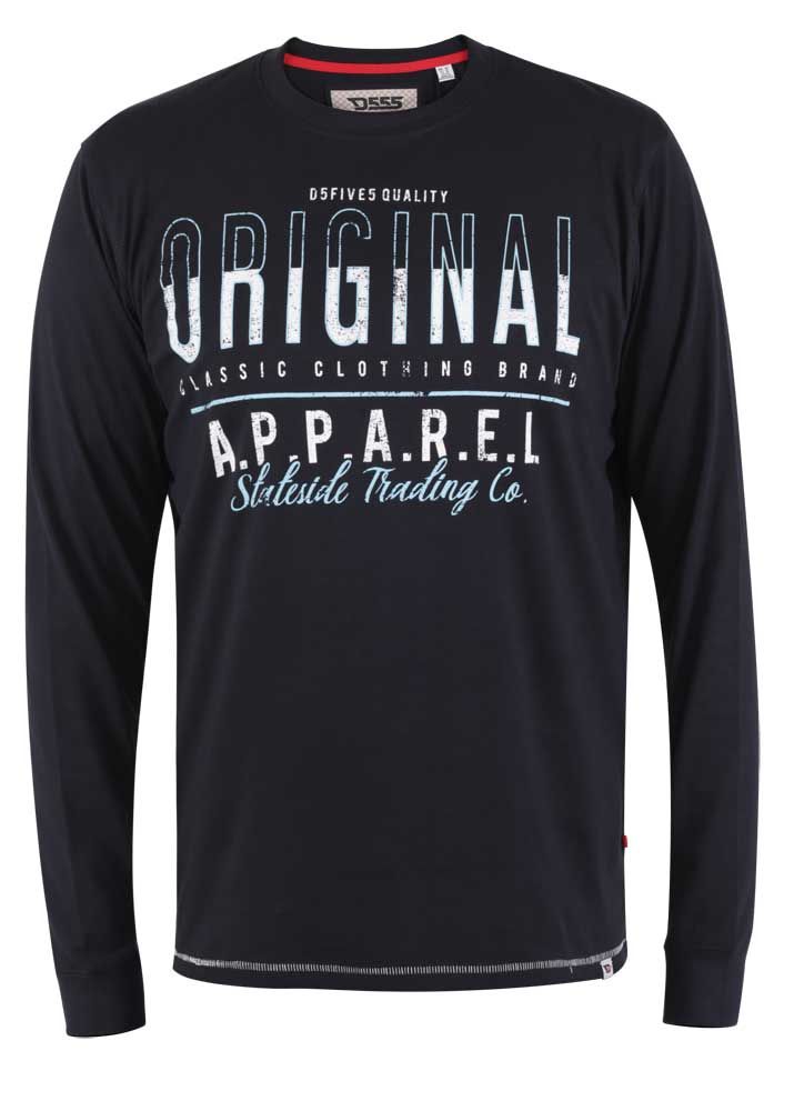 Langärmlige T-Shirt in großen GrößenKaufen Sie es bei uns in den Größen 2XL - 6XLVon der coolen Marke D555Hergestellt aus 100 % BaumwolleFarbe: MarineblauMaschinenwäsche bei 30°Saisonware - die Größen werden nicht nachbestelltUm den Größen-Ratgeber aufzurufen, klicken Sie hier