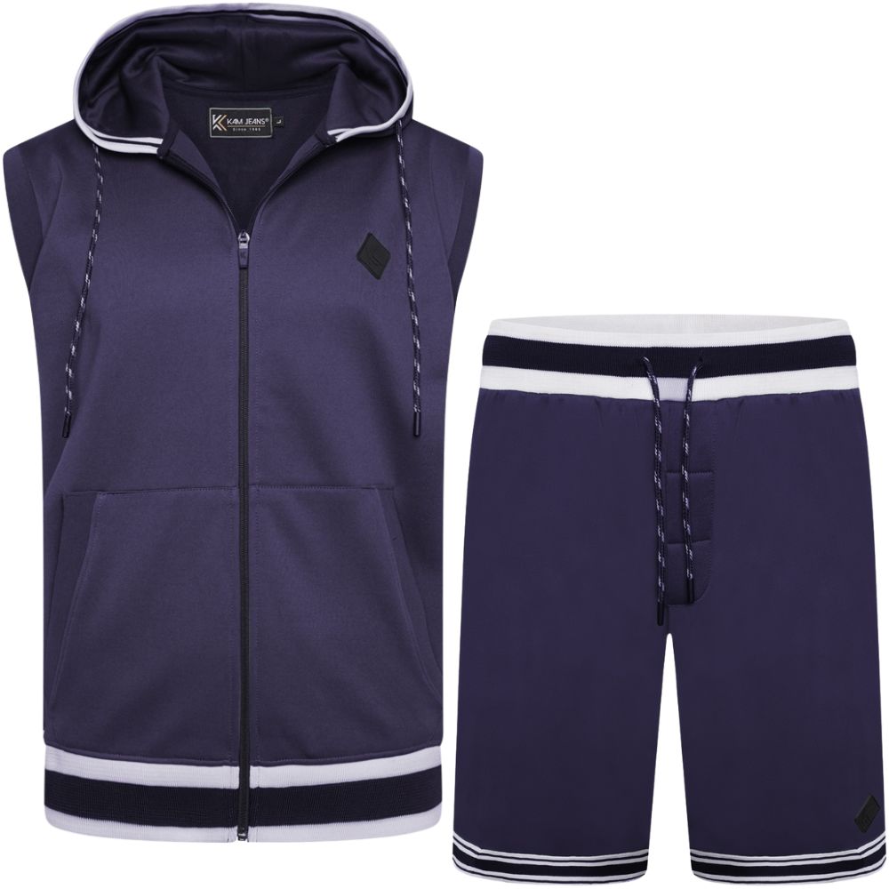 Größen-Ratgeber - Kam Jeans TS005 Retro Tracky Set (Shorts/Sleeveless Hoodie) Navy