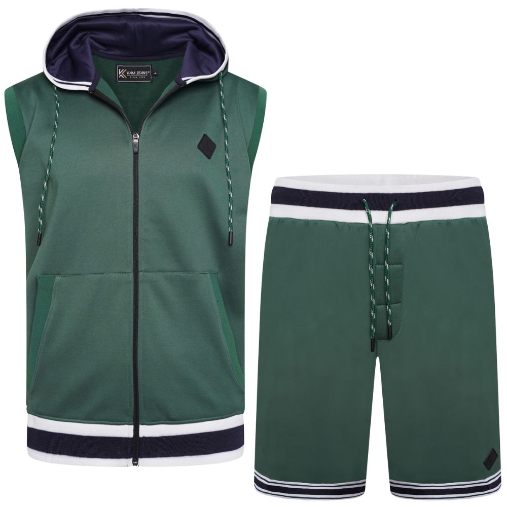 Größen-Ratgeber - Kam Jeans TS005 Retro Tracky Set (Shorts/Sleeveless Hoodie) Racing Green