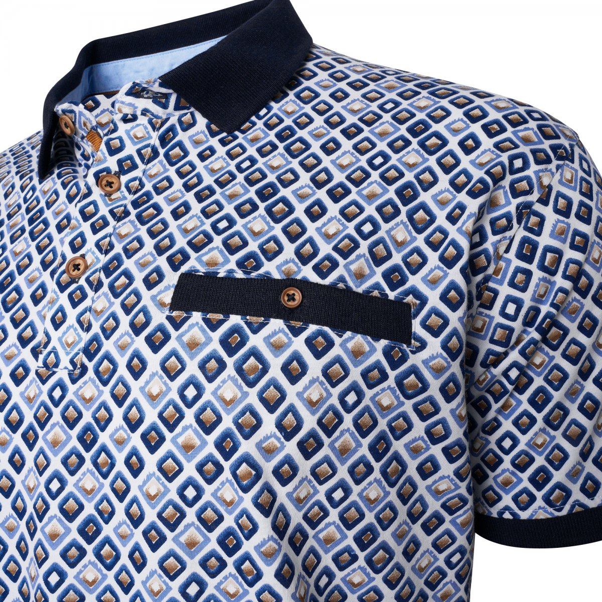 Größen-Ratgeber - Kam Jeans 5526 AOP Diamond Jersey Polo with Contracts Collar/Cuffs Navy